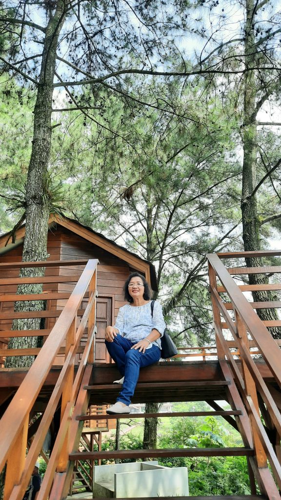 Rumah panggung dari kayu menjadi salah satu spot foto yang cantik di Lido Adventure Park. Lido Adventure Park tempatnya sejuk karena ada hutan pohon pinus.