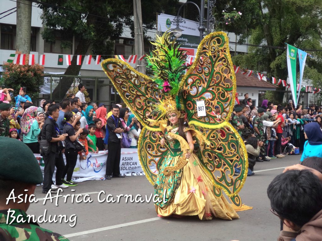 Salah satu peserta Karnaval Asia afrika dengan kostum kupu-kupu yang cantik.