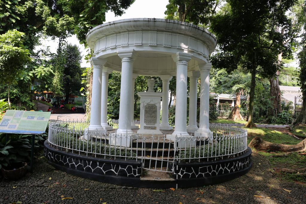 Tugu Raffles di dirikan oleh Sir Thomas Stamford Raffles, seorang Letnan Gubernur Inggris di Pulau Jawa (1811 – 1816). Tugu ini dibuat untuk mengenang istri Sir Raffles yang bernama Olivia Mariamne yang meninggal pada tahun 1814 di Bogor dengan usia 43 tahun karena penyakit malaria.