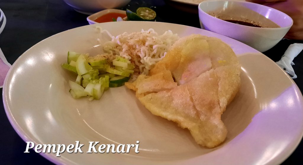 Menikmati pempek kapal selam Kenari.