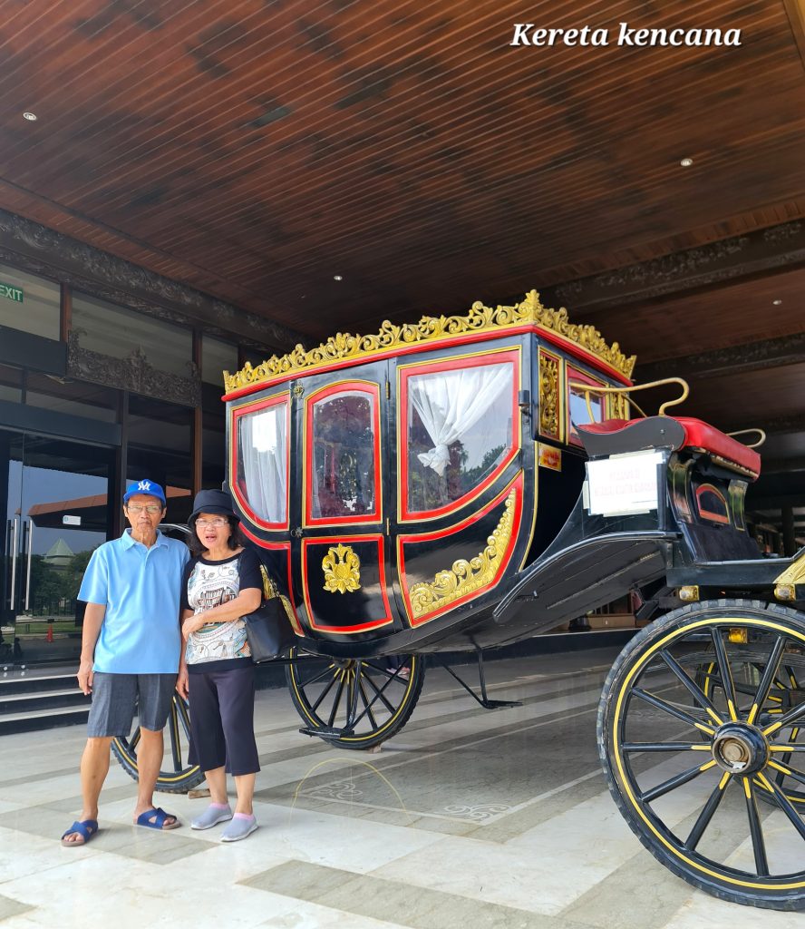 Berfoto di depan kereta kencana.
