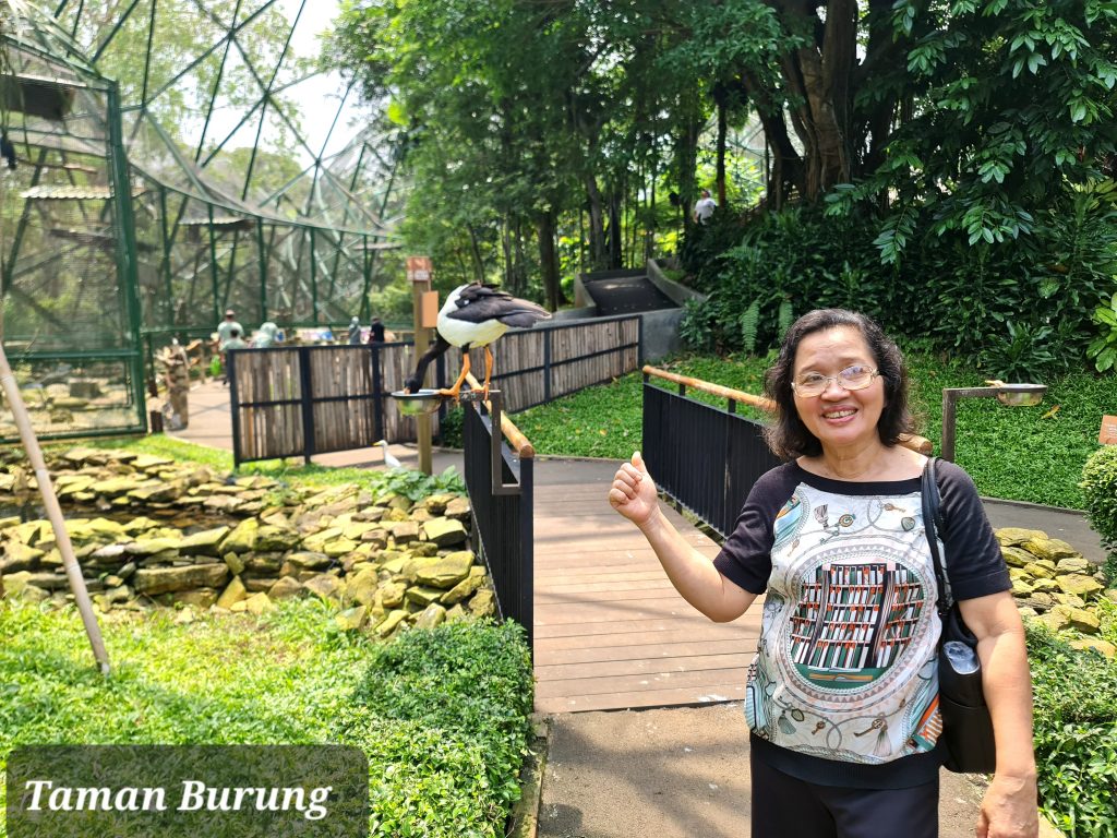 Taman Burung mempunyai koleksi burung-burung seperti : Maleo, Merak, beo, Enggang, Jalak Bali, Cendrawasih, Kasuari, Nuri, Elang Jawa, Pelikan, Angka dan masih banyak lainnya. Taman ini juga memiliki sungai dan danau buatan serta taman-taman yang cantik dan terawat.