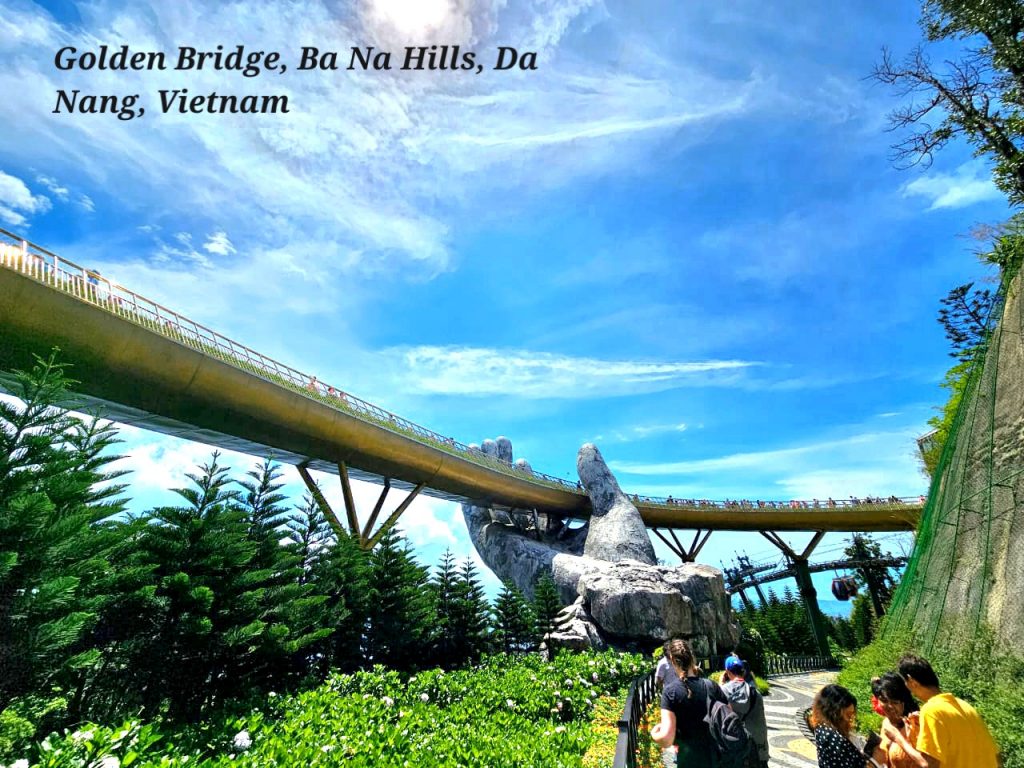 Golden bridge berada di Ba Na Hills, Da Nang, Vietnam. Golden bridge mempunyai panjang 150 meter ditopang oleh 2 tangan raksasa berada di ketinggian 1.400 meter diatas permukaan laut. Pembuatan Golden bridge ini menelan biaya sebesar US$ 2 milliar.