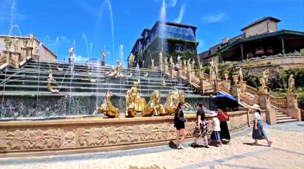 Kolam air mancur yang cantik yang ada di dalam French Village. Kolam ini dihiasi dengan patung-patung khas Perancis.
