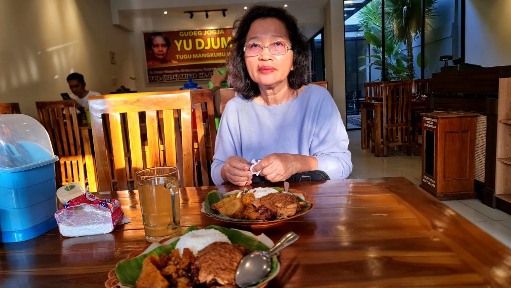 Wisatawan yang datang ke Yogya mesti mencoba kuliner gudeg karena gudeg adalah kuliner khas Yogya. Banyak tempat kuliner gudeg di Yogya, salah satunya Gudeg Yu Djum yang banyak mempunyai cabang di Yogya. Gudeg Yu Djum yang berlokasi di Tugu Mangkubumi beroperasi selama 24 jam. Jalan Wijilan dikenal sebagai kampung gudeg karena sepanjang jalan Wijilan banyak terdapat rumah makan yang menjual gudeg.